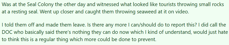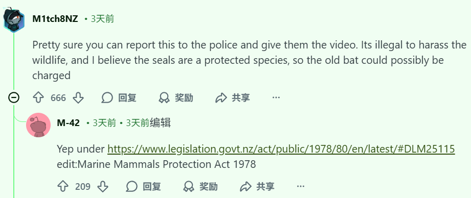 还有网友指出,这类行为在新西兰属于违法行为,因为海豹等海洋哺乳动物受到法律保护。