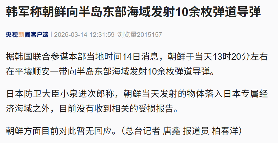 收藏突发!韩国军方:朝鲜发射10余枚弹道导弹!日本:目前没收到受损报告