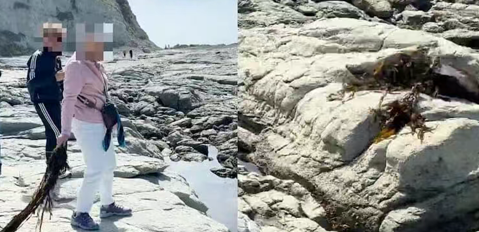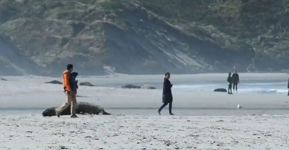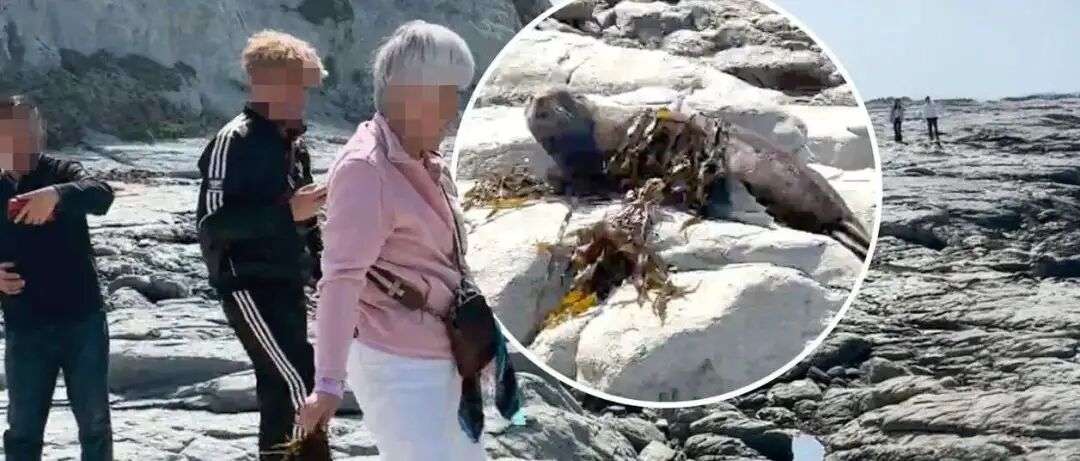 另一边,中国大妈在新西兰海边扔海带砸海豹,全过程被拍!