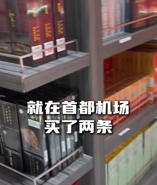这位游客在首都机场免税店买了两条特别便宜的免税烟,本来想着带过去慢慢抽。