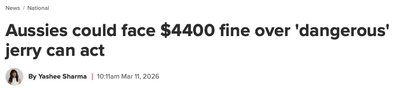 NRMA发言人Peter Khoury也提醒:民众把燃油囤在家中存在很大安全风险。