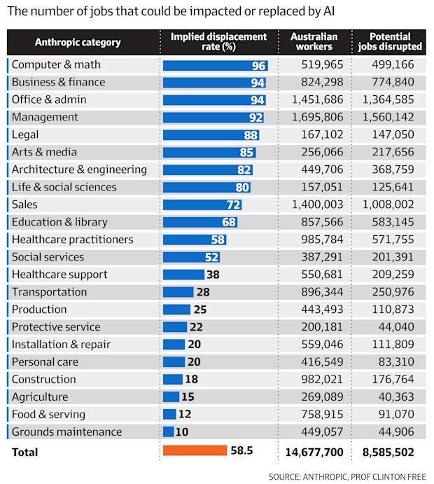但即使这些预测最终只有10%到15%真正变成裁员,而不是岗位转型,那也意味着澳洲将有超过100万份工作受到影响。