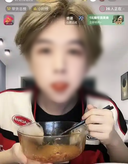 他来自江西农村,能吃苦,只要打开他的直播间,常常能看到他卖命在吃的场景。