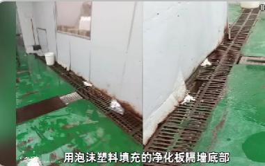 而这个地面,是由环氧树脂刷成的,本就有大量化学物质, 而工人一铲子一铲子把环氧树脂的碎屑和污水再加上毛肚一起铲走,地面都铲得破损不堪。