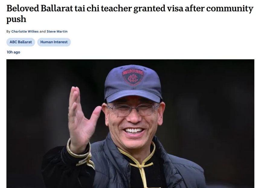 在社区深受爱戴的太极师傅Jack Yang及妻子Shirley Jin获得了澳洲永居签证。