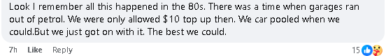 这种情况在80年代就经历过。当时很多加油站真的会没油,只能一次加 10澳元。大家能拼车就拼车,能少开就少开,也就这么慢慢熬过去了。
