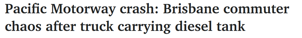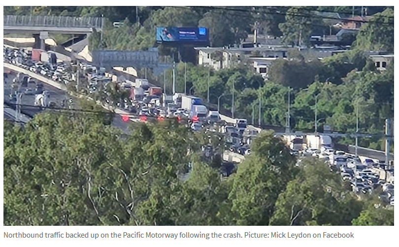 突发,一辆载有柴油罐的卡车在Pacific Motorway上发生车祸,导致布里斯班南部通勤者面临长达超过17公里的排队车龙。