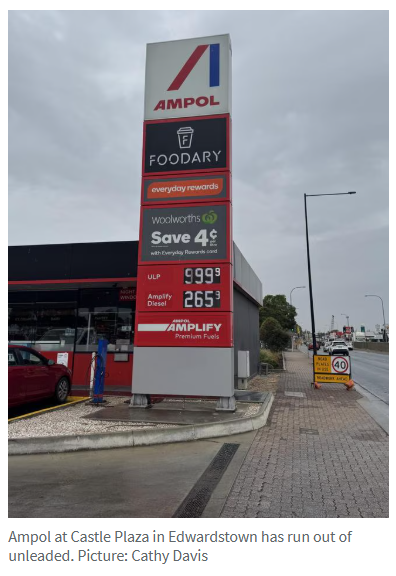 根据RAA油价地图,Edwardstown和St Agnes的服务站已无91号无铅汽油。阿德东北部的St Agnes加油站同时也缺优质柴油。