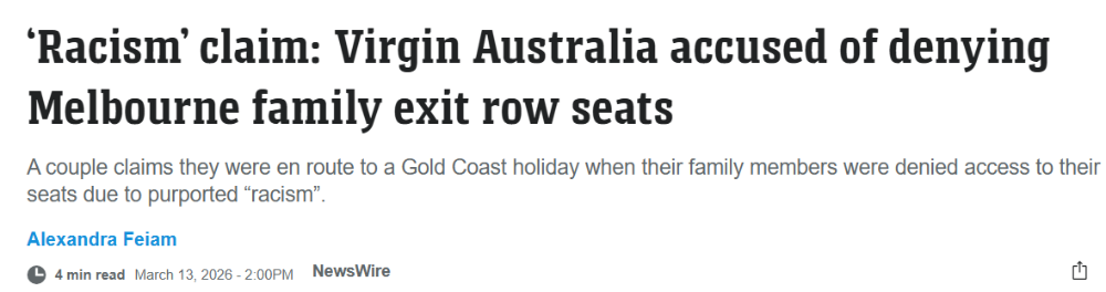 维珍澳洲航空发言人随后表示,公司致力于为所有乘客提供包容和尊重的服务环境,并且会认真对待类似投诉。