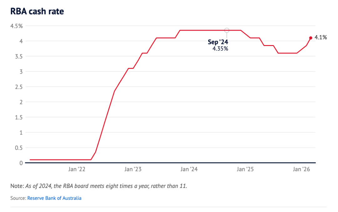 这是自去年5月以来,澳大利亚现金利率首次回升至4.1%的水平。此次加息也相当于抵消了澳储行在2025年实施的三次降息中的两次。