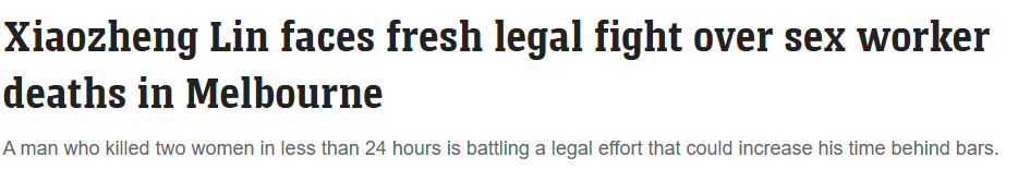 中国留学生林晓正(Xiaozheng Lin)在24小时内连续杀害两名性工作者,最终被判14年监禁。