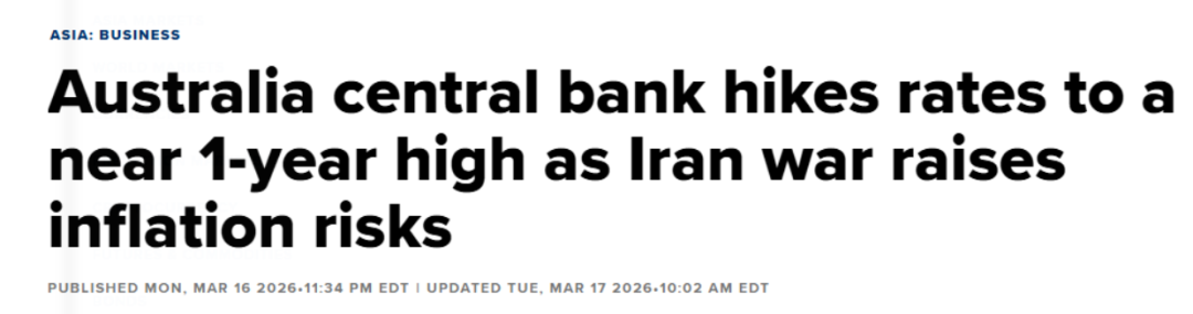澳大利亚央行成为首批因动荡局势而加息的主要央行之一,
