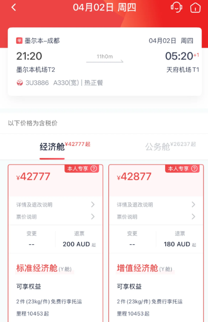 一夜之间,中澳机票价格集体“失控”。中午还在5千,晚上直接飙到9千甚至上万!同一航班同一时间,却像换了一个世界。