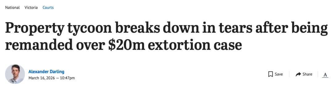 近日,一名在墨尔本房地产界颇具影响力的开发商因涉嫌勒索被警方逮捕,并在法庭上得知将被继续羁押一晚时当庭痛哭。