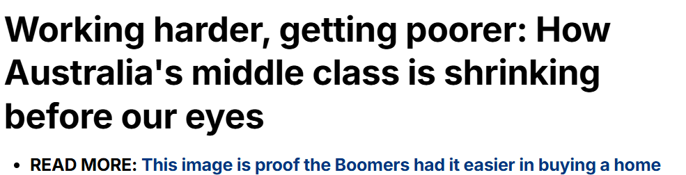 在这样的大环境下,越来越多的澳洲人发现,曾经理所当然的中产生活,正变得越来越遥不可及。
