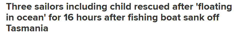 昨晚,一艘船在塔州附近海域沉没,船上三人(包括一名儿童)在海中漂浮了16个小时后幸存下来。