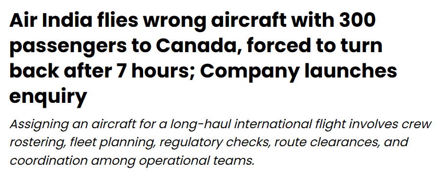 印度航空(Air India)再次因运营问题登上新闻。一架原定从德里飞往加拿大温哥华的AI-185航班,在起飞约8小时后被迫折返出发地,机上载有300多名乘客。