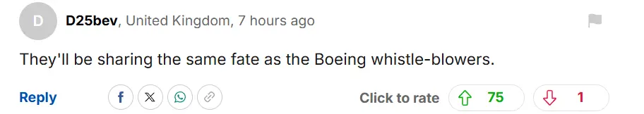 “他们将面临与波音公司吹哨人同样的命运。”