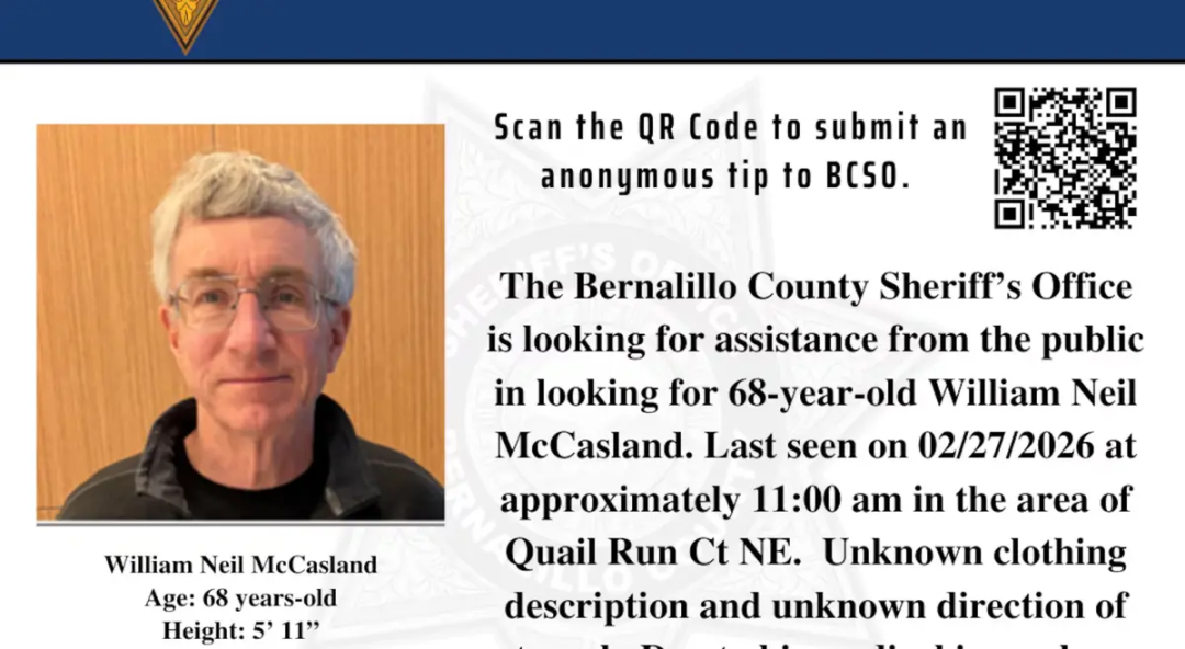 六天之后,2月27日,麦卡斯兰在没有任何征兆的情况下走出了 新墨西哥州阿尔伯克基的家门。