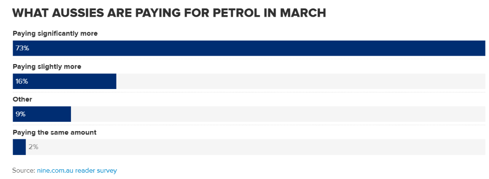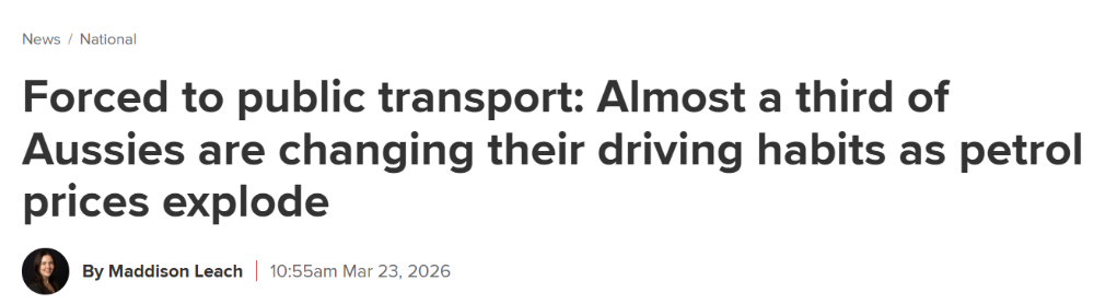 受国际局势影响,澳洲油价持续飙升,导致近三分之一的澳洲人开始减少开车时间、更多选择公共交通或干脆避免外出。