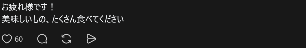 “辛苦了!请多享用美味的食物!”