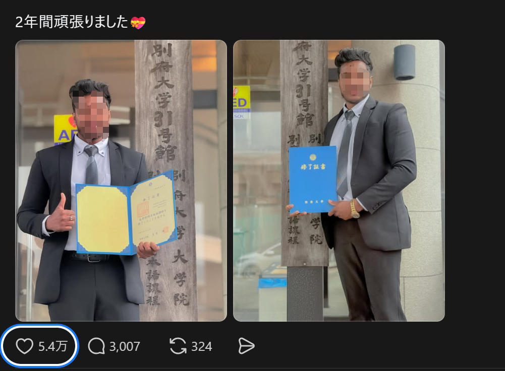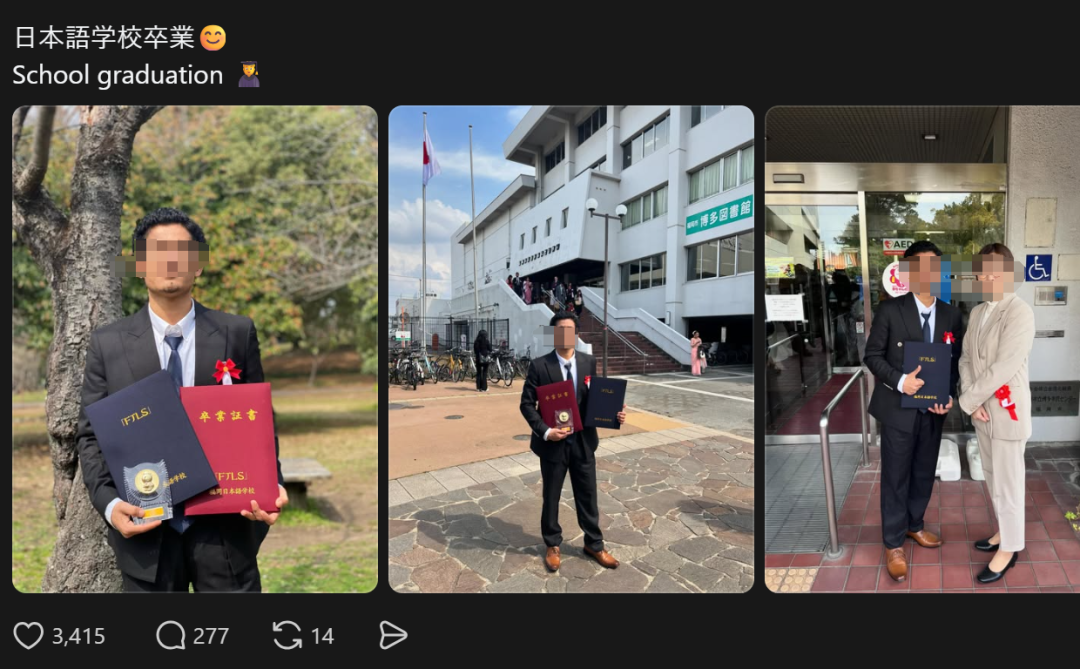 最近软件Threads兴起了一股发自己从日本学校毕业的投稿热潮。这里面有欧美人,有印度人有尼泊尔人越南人缅甸人等等。但是评论区却严重两极分化。