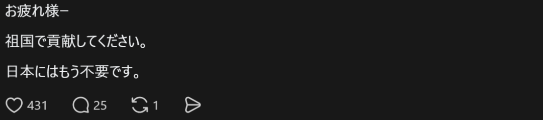 现在的日本对于外国人的态度真的是难评啊。在高市上台后,日本国内已经成功将这股对于停滞三十年的经济的怒气全部转移到了外国人身上。