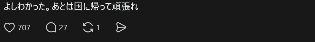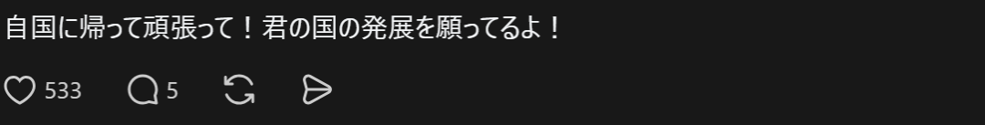 另外,那些叫人‘回自己国家去’的评论还没开始吗w”