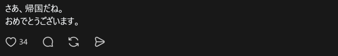 “好了,该回国了呢。恭喜。”