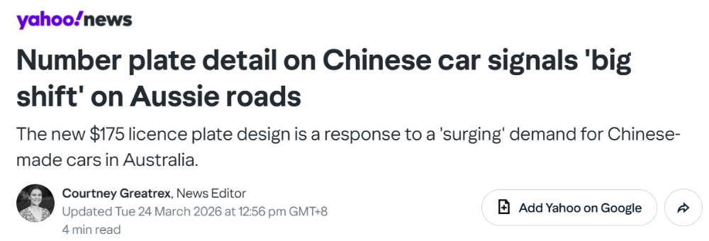 Swinburne University教授Hussein Dia表示,这个小小的车牌,其实反映的是澳洲汽车市场正在发生的大变化:中国汽车制造商正在快速扩大在澳洲市场的影响力,特别是在电动车领域。