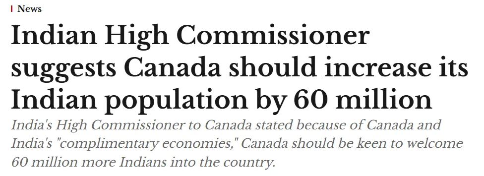 “加拿大应再接收6000万印度移民”