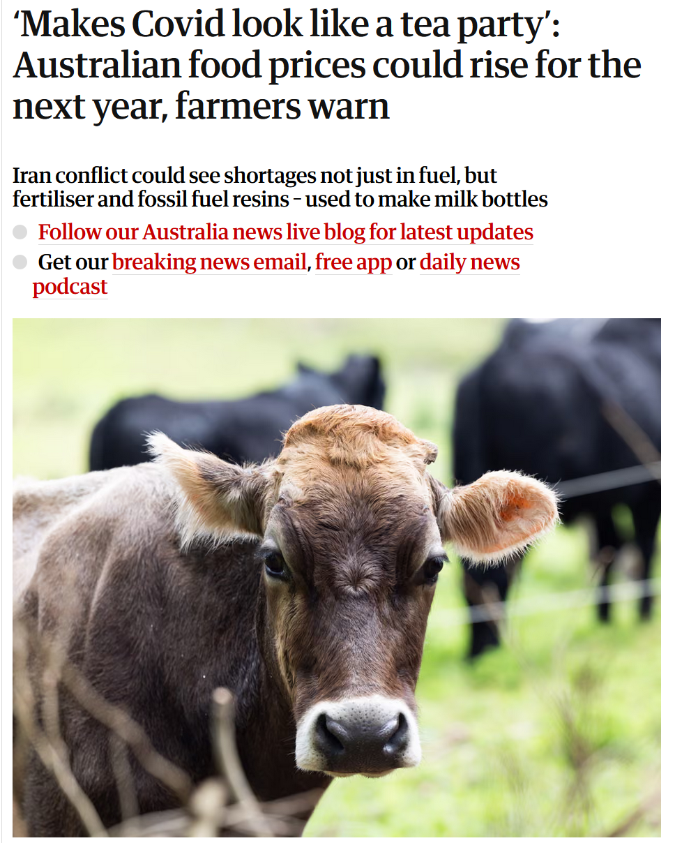澳洲的乳农合作社表示,消费者未来一年要为基本食品支付更高的价格。