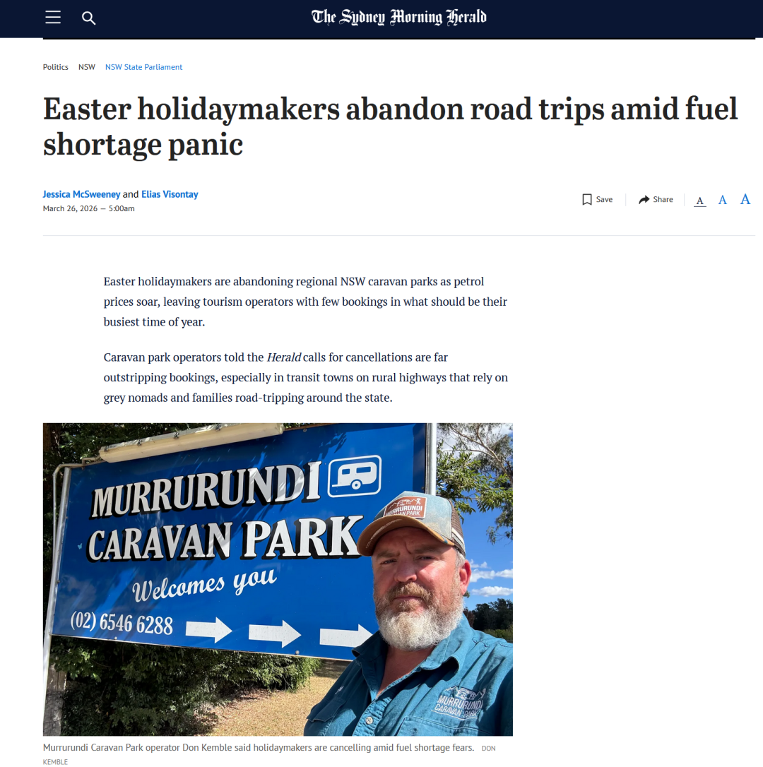 (随着油价飚升,复活节度假者们在放弃去乡镇地区的房车公园的计划,本该是一年中最忙的时候的预订,显著减少)