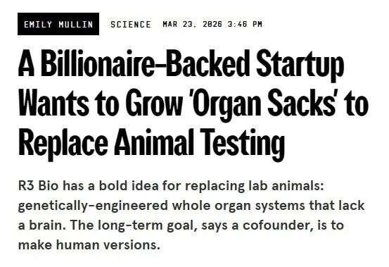 R3 Bio所做的一切的伦理前提是:没有大脑 = 没有意识 = 没有道德问题。