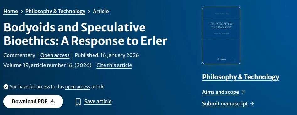 学术界对此也有争论,比如去年11月,Springer(Nature出版商)旗下的学术期刊《Philosophy & Technology》发表过一篇论文,直指“Bodyoid”的问题。