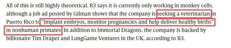 《连线》杂志发现,Gilman在网上发布了一则招聘广告,是在波多黎各招兽医,工作内容是“植入胚胎、监测怀孕、协助分娩”.......