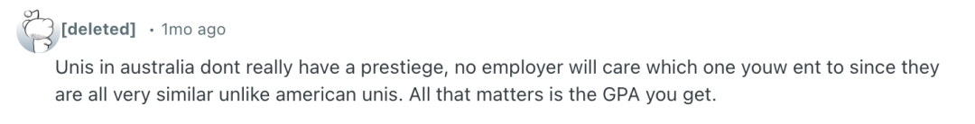 有网友认为,澳洲高校之间的认可度差距并没有美国那么悬殊,雇主通常不会过分纠结于学校名气,GPA与个人能力反而更重要。