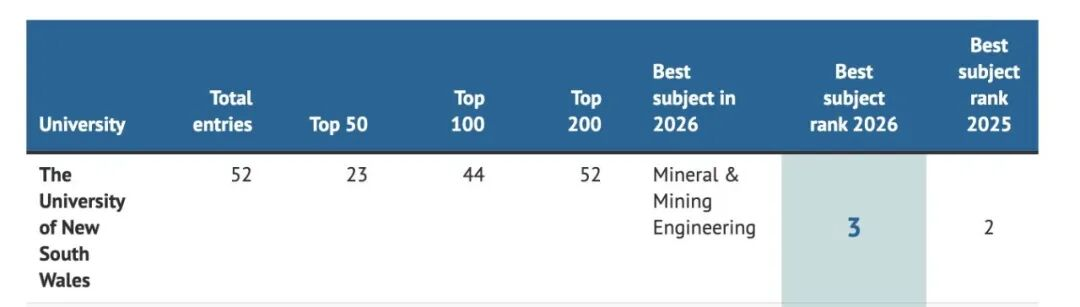 根据The Age统计,澳洲共有四所大学的工程课程跻身全球前十。 其中, 新南威尔士大学的矿物与矿业工程课程常年稳居世界前三。 不仅如此, 科廷大学(4)、昆士兰大学(5)和西澳大学(9)在此领域同样表现亮眼。这些在很多人印象中偏“冷门”的专业,在澳洲却凭借硬核实力,成为了全球公认的王牌专业。