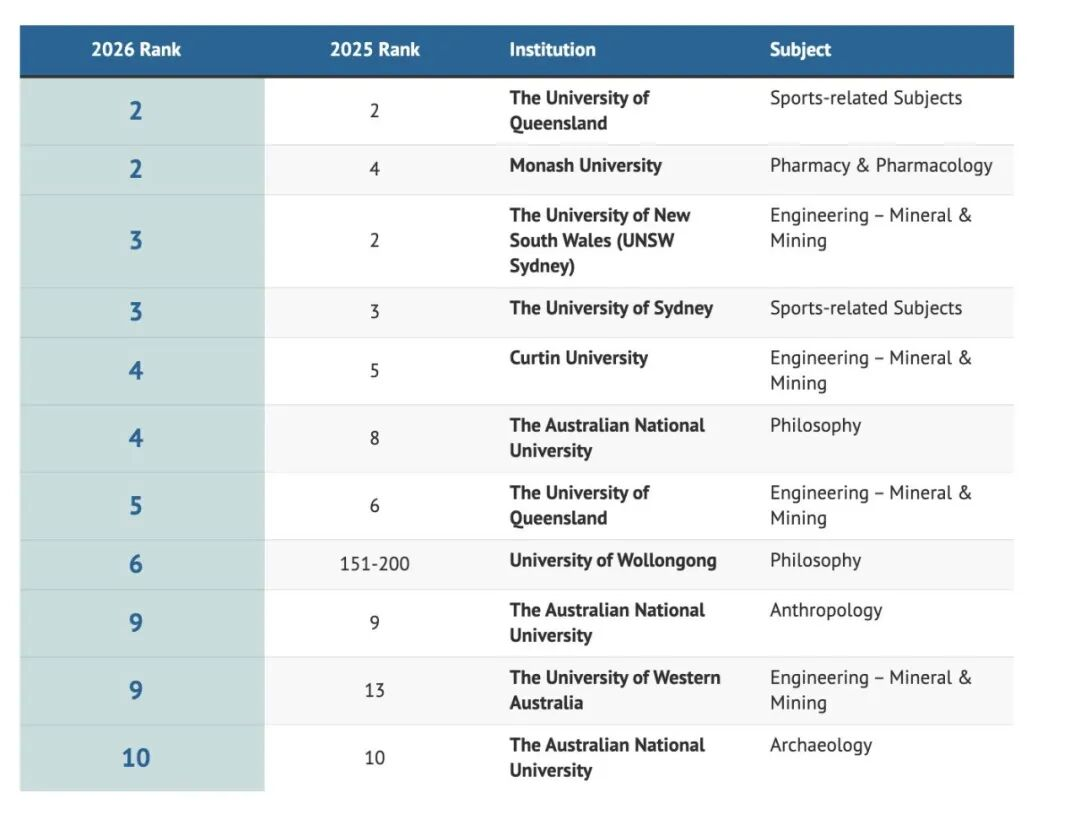 昨天, 2026年QS(Quacquarelli Symonds)世界大学学科排名新鲜出炉! 看完之后只能说, 澳洲有些专业真的强到离谱。