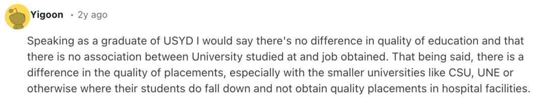 也有悉尼大学毕业生提到,各校基础教学质量差距不大,但部分非名校在优质实习资源的获取上确实处于劣势。