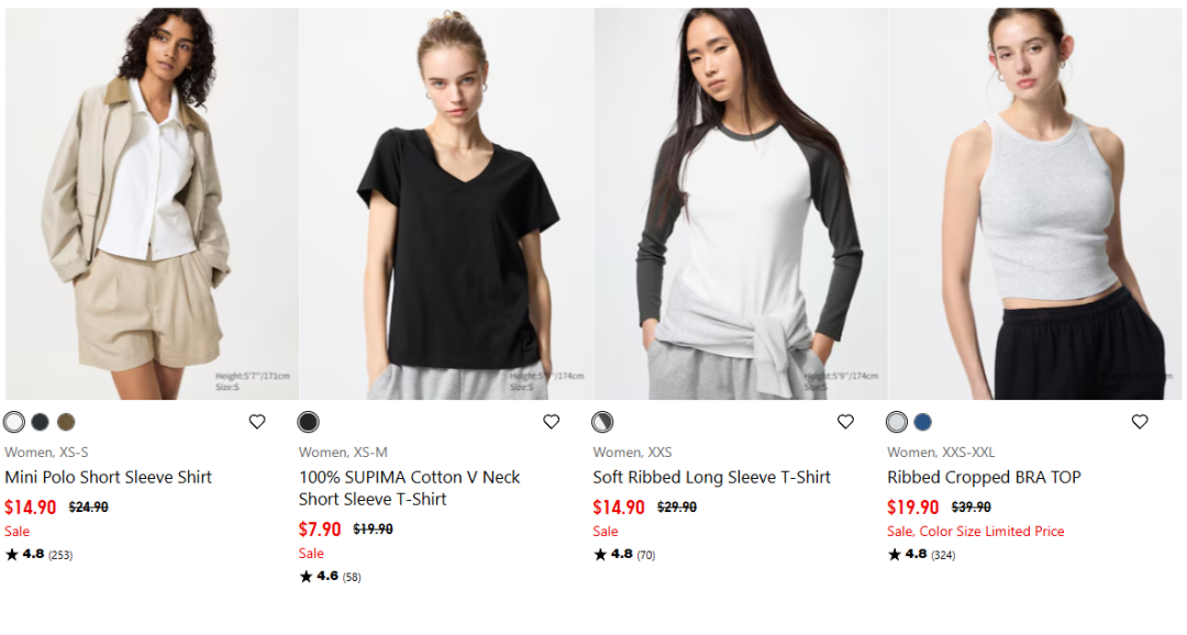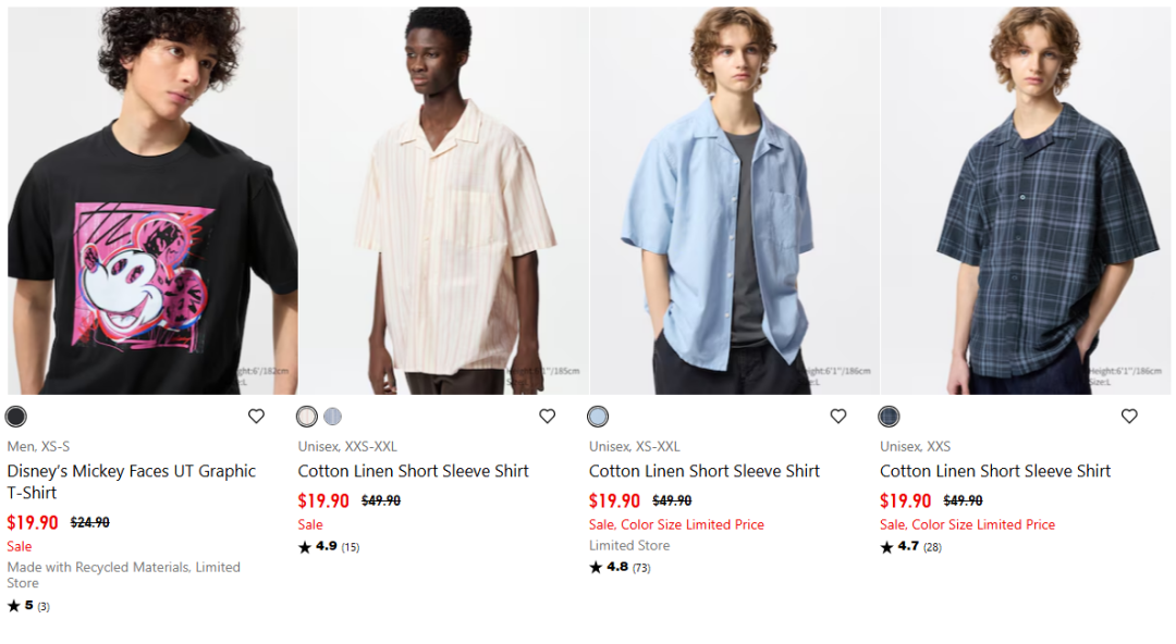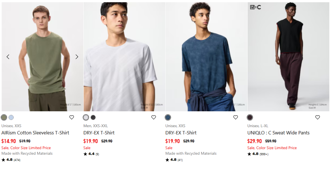 收藏优衣库最新折扣!短袖$7.9起,裤子$14.9起