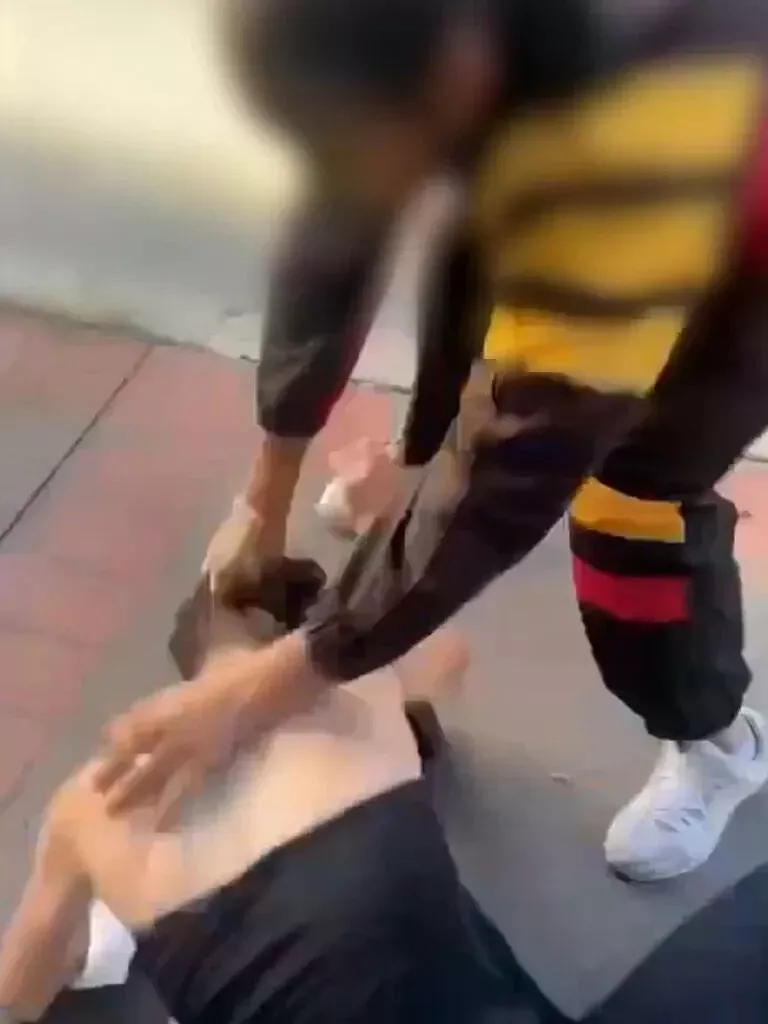 现场视频显示,受害者被推倒在地后遭到踢打,头部成为主要攻击目标,期间伴随辱骂声不断。