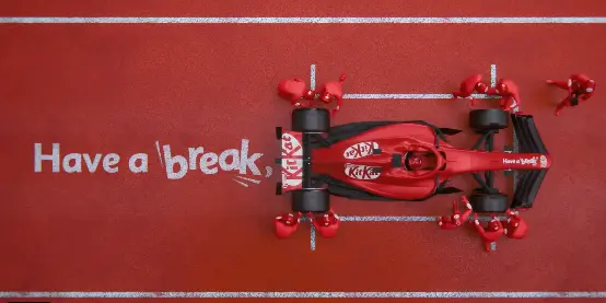 而KitKat呢,也趁着这波热潮,在去年正式拿下了F1的官方赞助——双方的合作恰逢F1成立75周年和KitKat成立90周年,算是强强联合了。