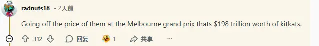 “按墨尔本大奖赛现场的售价来算,这批奇巧价值198万亿。”