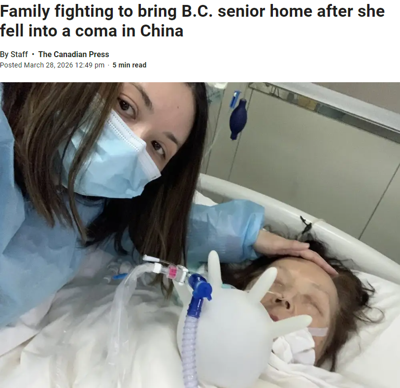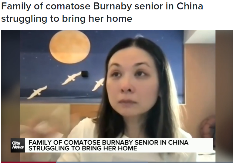 据加拿大媒体报道,一位来自加拿大卑诗省本那比的78岁华人女性,在中国云南昆明突发脑出血并中风,目前仍处于人为昏迷状态,而她的家人正面临一个几乎无法承受的现实,他们可能负担不起把她带回加拿大的费用。