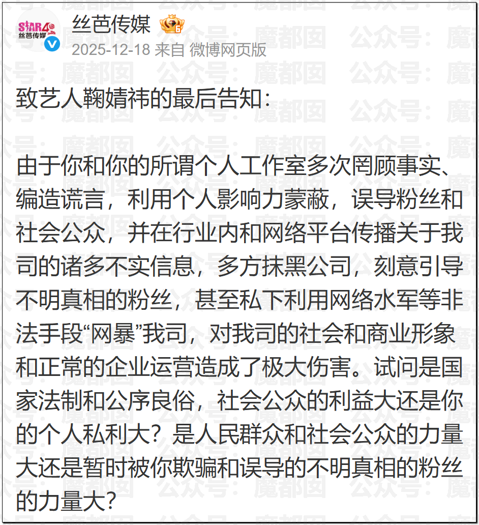 今天最炸裂的还属鞠婧祎了,丝芭这个下手太狠了,如果属实的话,那么鞠婧祎从此就真的查无此人了……
