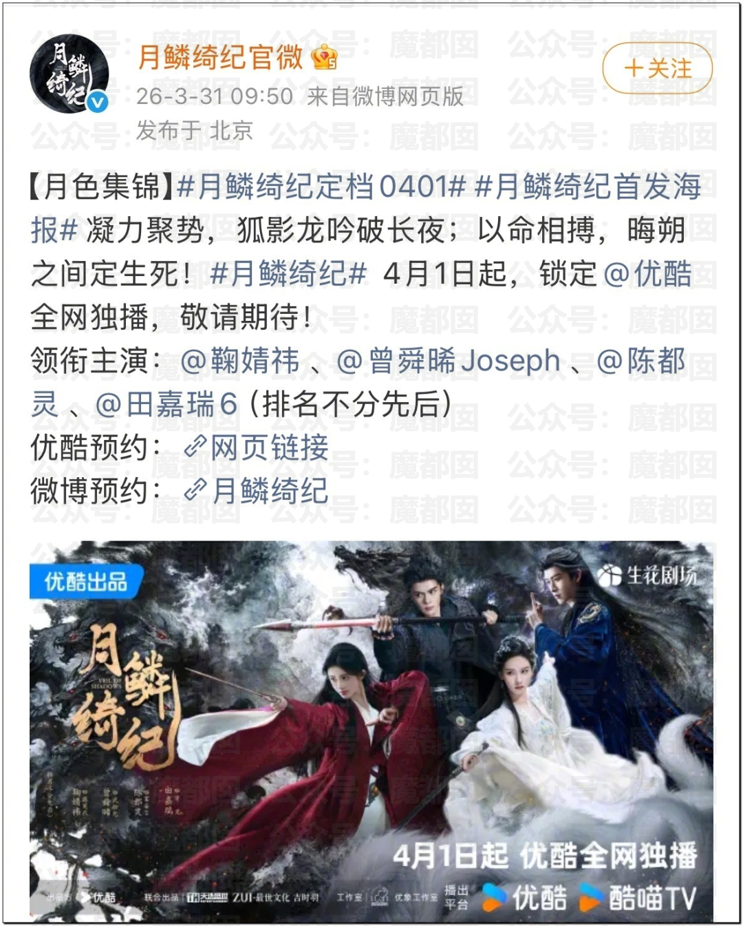 这次卯足劲硬要明天上的《月鳞绮纪》,片酬1600万,不知道优酷会不会吐血。