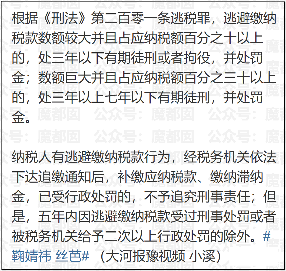律师解读,这个事情不是小事,偷漏税向来就是艺人的死穴,历史上但凡沾边的一律都凉,没有例外的: