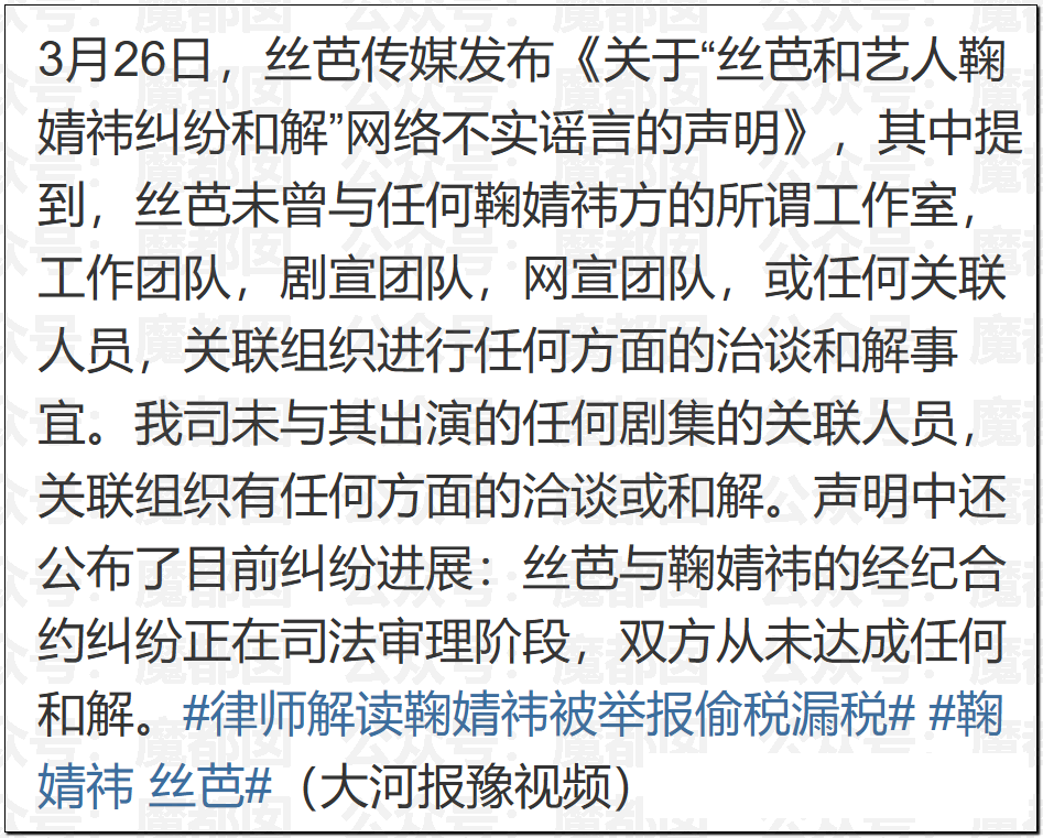 其实这个事情早有征兆,前几天丝芭还在辟谣和解的事情。