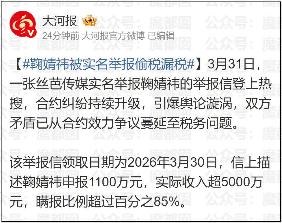 收藏突发!鞠婧祎被丝芭举报巨额偷漏税!涉案金额巨大令人咋舌!